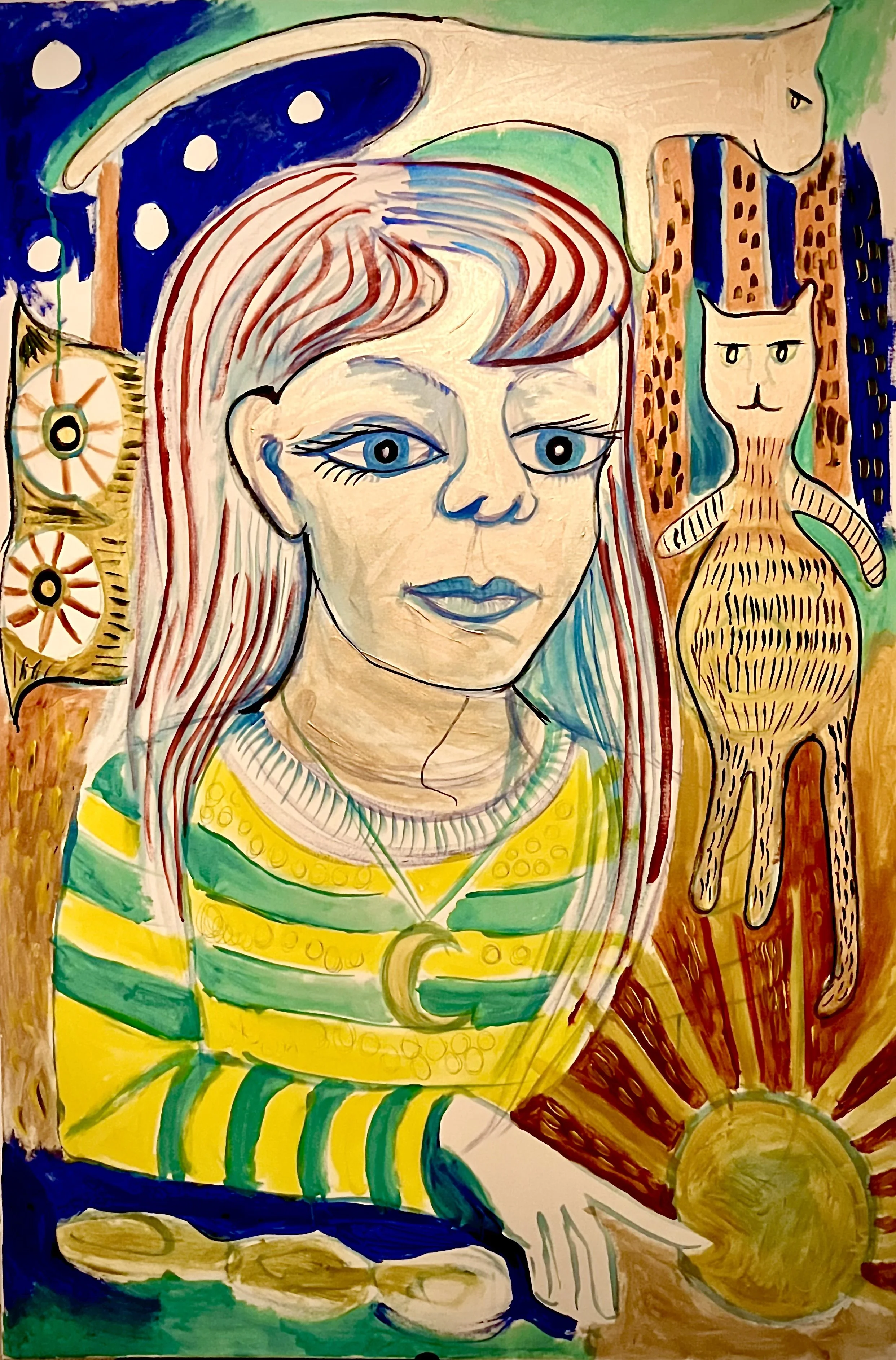 The philosophical implications of non-dualism within art practice continues to shape my approach to making: in my work, painting becomes both image and presence, both narrative and sensation. The viewer is invited into a relational encounter—not to decode a fixed message, but to dwell in the space between forms, between selves.